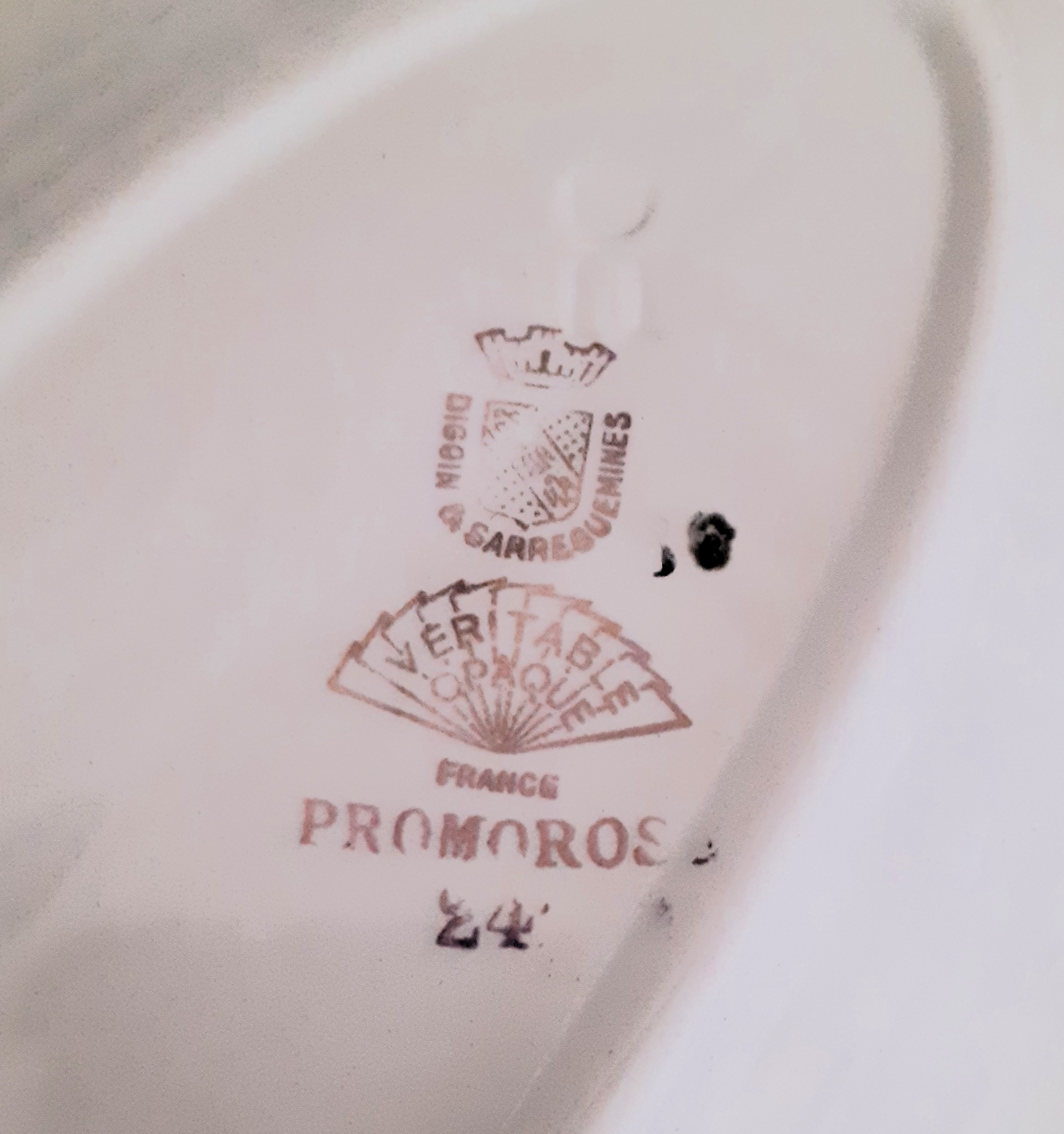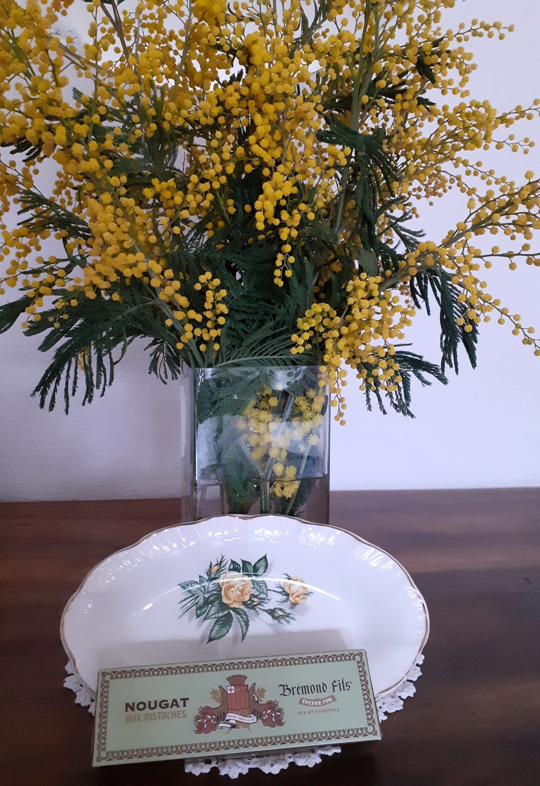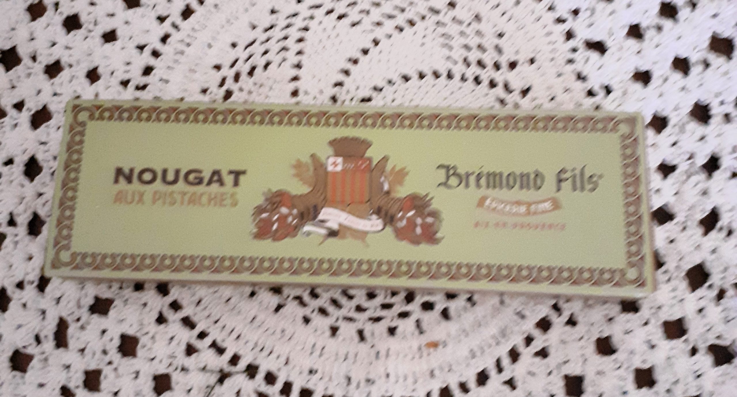 Au cœur de ce lot, un plat ancien Sarreguemines au décor fleuri, tout en finesse et en douceur, emblématique du savoir-faire des grandes faïenceries françaises. Il est accompagné d’un nougat artisanal Brémond Fils aux pistaches, clin d’œil gourmand au Sud et aux plaisirs simples.