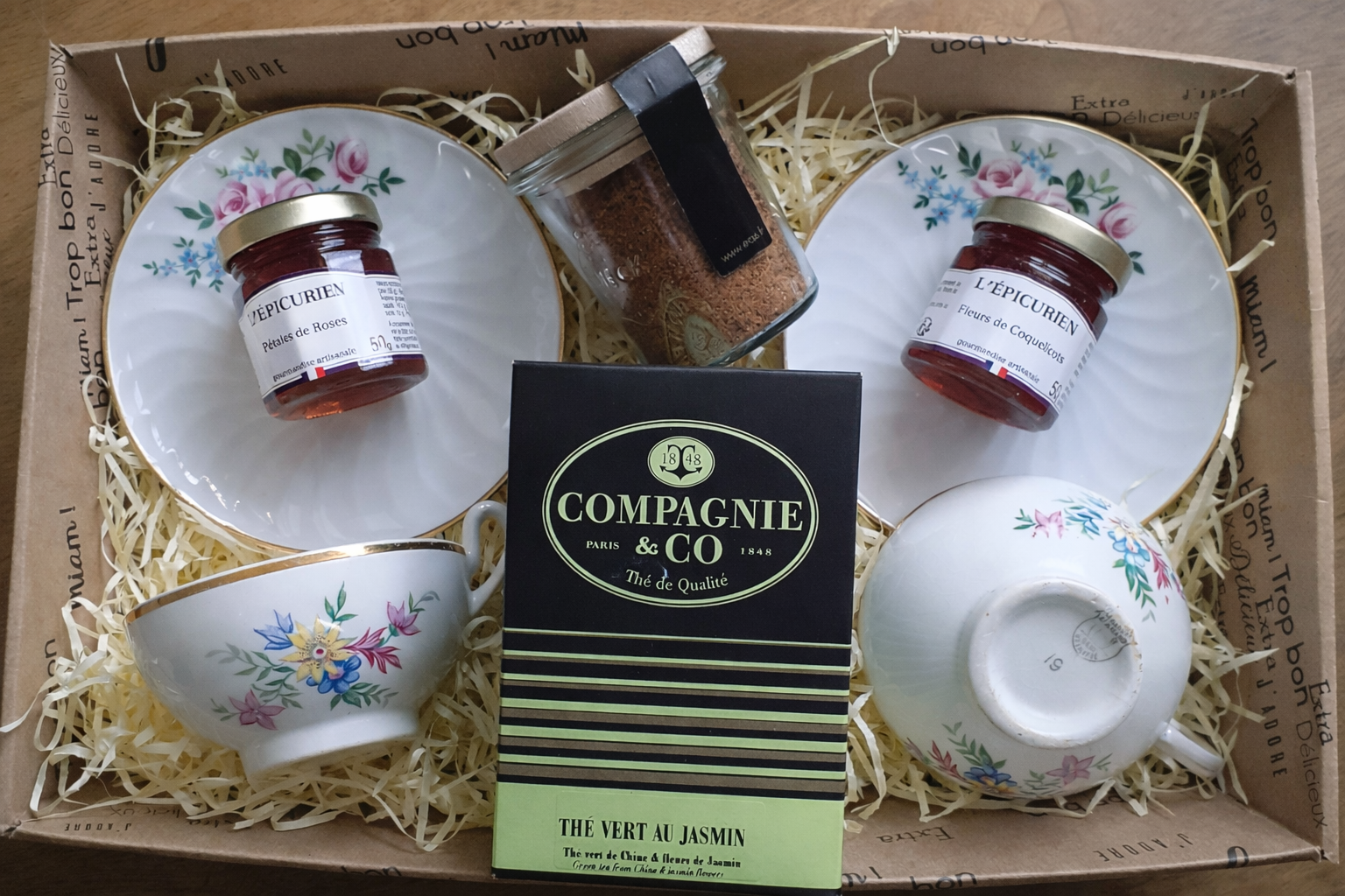 Cette panière raffinée invite à un instant de douceur, entre tradition française et poésie florale. Une composition pensée pour les amoureux des belles choses, du thé de qualité et des moments suspendus.