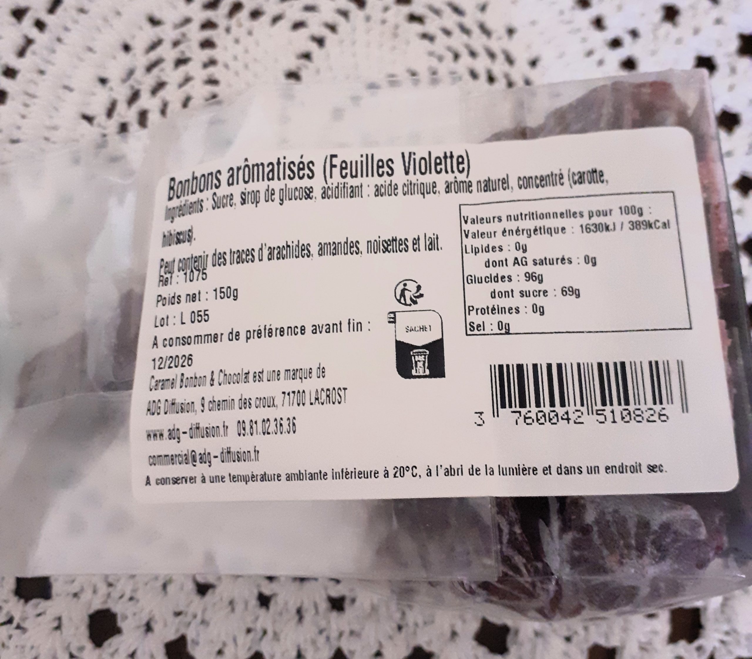 • Bonbons à la violette de la marque Caramel, Bonbon, Chocolat : 150 g (ingrédients sur photo)